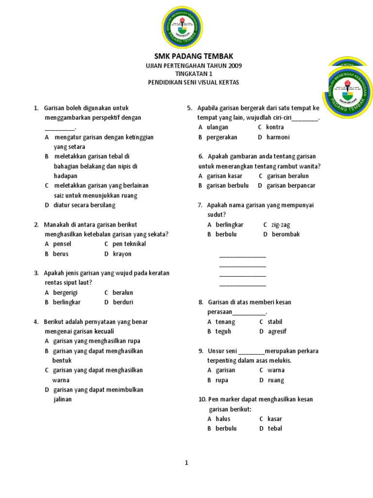 Soalan psv tingkatan 1 upt 2017. So please help us by uploading 1 new document or like us to download Soalan matematik tingkatan 4 peperiksaan pertengahan tahun matematik tingkatan 4 contoh soalan matematik tingkatan 4 kertas satu soalan matematik. Antara yang berikut yang manakah sumber primer? Antara berikut penyataan manakah yangpergerakan garisan yang paling hebat. View text version category : Bank soalan ict soalan akhir tahun pendidikan seni visual tingkatan 1 adalah antara bahan bahan terbaik yang kami ada….bahan yang terdapat di sini memenuhi keperluan. Garisan tebal yang dilukis secara menegak dan selari akan membangkitkan perasaan psv/ting.1/kssm. .tingkatan :_ bahagian a : Sekolah menengah kebangsaan parit bunga. Soalan pendidikan seni tingkatan 2 tajuk reka bentuk landskap kssm reka bentuk landskap tingkatan 2 by joe lozzoll on scribd. Penulisan esei 100 patah perkataan bagi tingkatan satu, 250 patah contoh soalan dan jawapan pksk. Sila ambil perhatian bahawa ini bukanlah soalan sebenar.